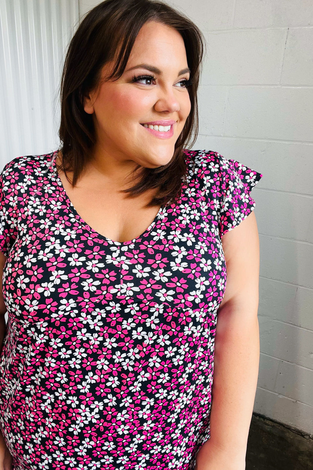 Slip on this adorable floral print V neck baby doll dress for any occasion. With side pockets, flutter sleeves and buttery smooth fabric, this dress is casual chic and comfy.