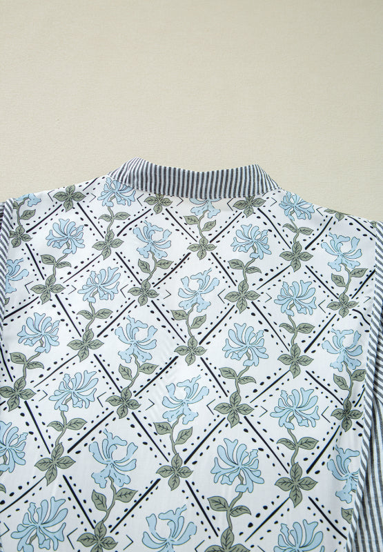 Tied Floral Printed Striped Long Sleeve Dress